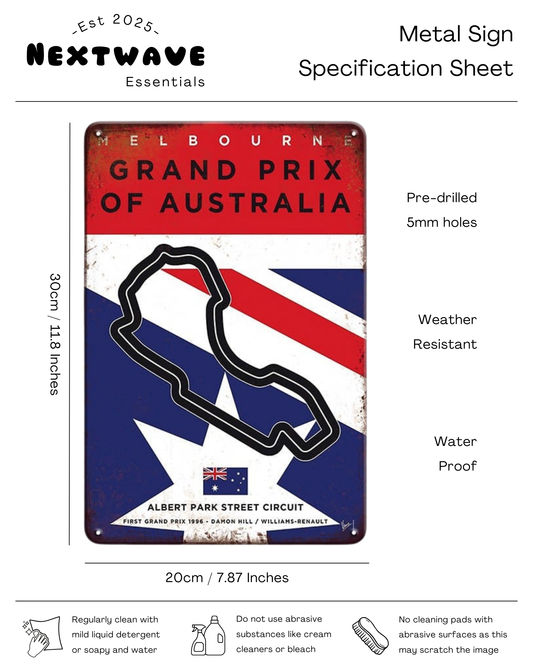 Australian Grand Prix Albert Park Circuit Racing Art – Metal Sign
