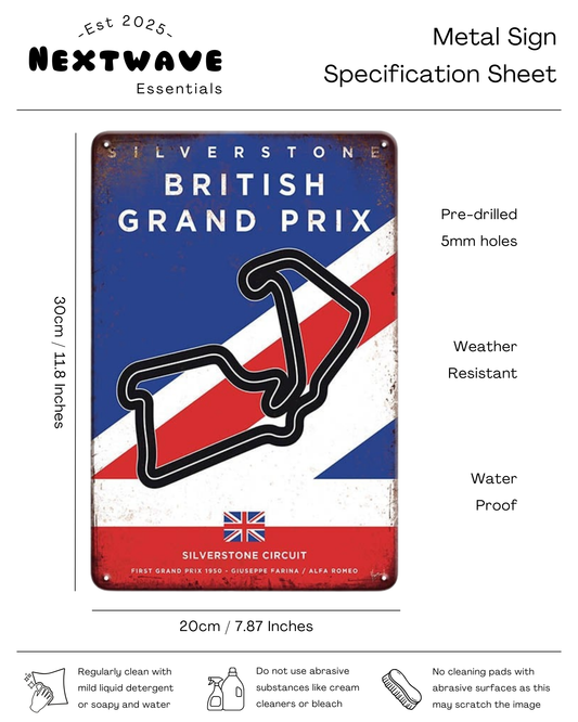 British Grand Prix Silverstone Circuit Racing Art – Metal Sign