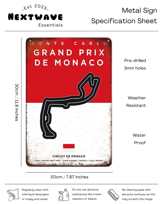Monaco Grand Prix Circuit de Monaco Vintage Racing Art – Metal Sign