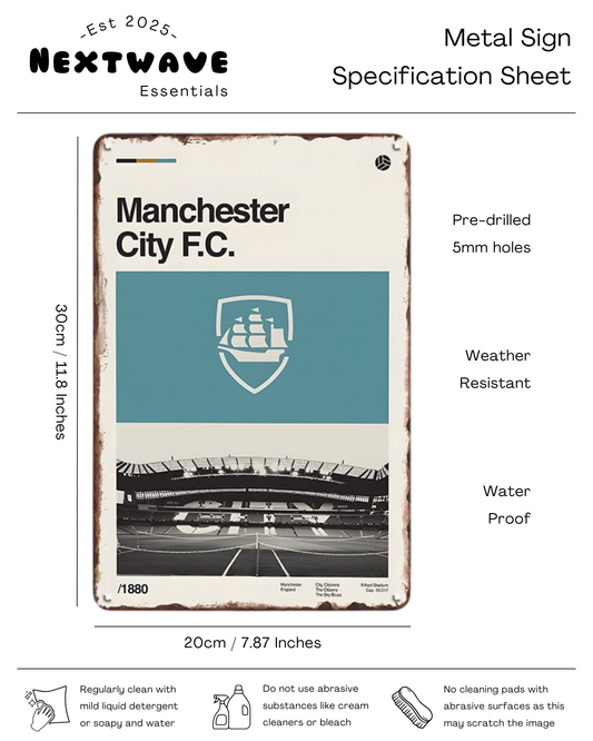 Manchester City FC Retro Stadium Sign β Metal Sign