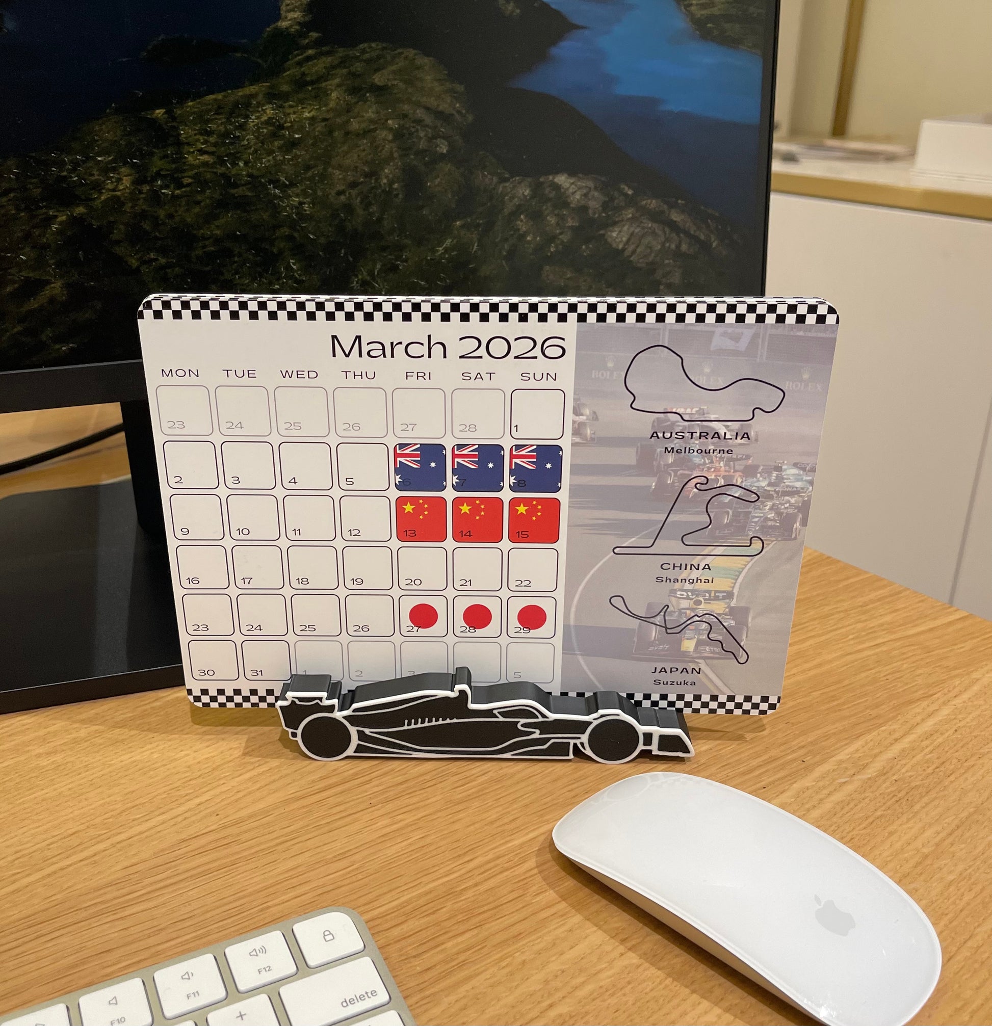 2026 F1 Calendar – Formula 1 Inspired Desk Calendar with Car Stand