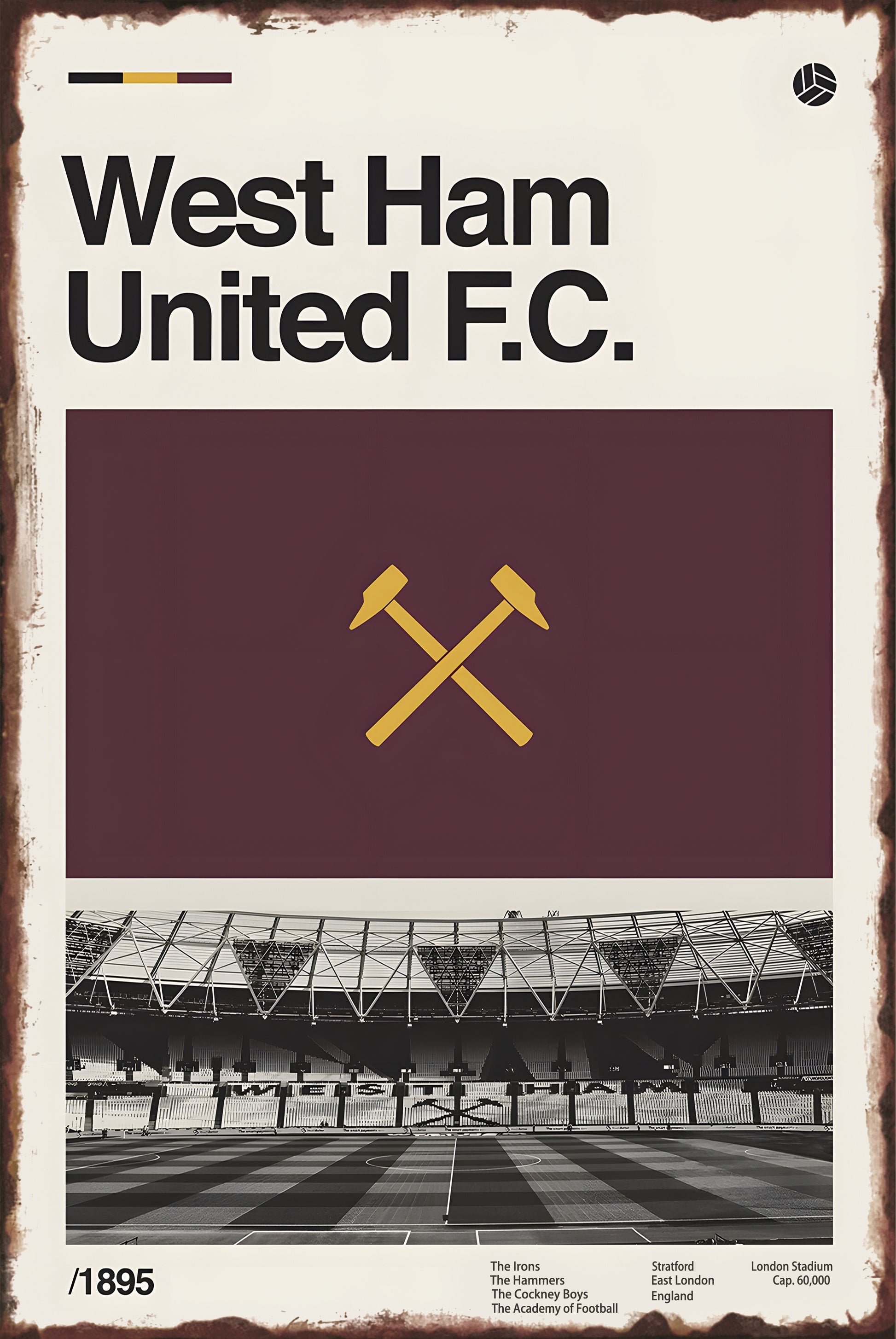Show your support for the Hammers and bring the spirit of London Stadium to your walls with this timeless West Ham FC metal sign!